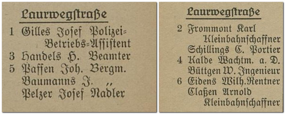 Laurwegstraße 1 taucht bei Aretz mehrmals auf: